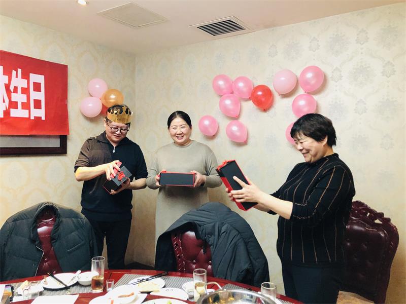 協(xié)會會員集體過生日是我協(xié)會文化活動的重要組成部分,一個生日蛋糕,一張生日賀卡,一碗熱氣騰騰的長壽面,一束鮮花,一聲祝福,讓大家的生日有了儀式感,體現(xiàn)了協(xié)會對每一位會員的關懷和祝福,拉進了會員間的距離,也將會員的心凝聚在了一起。三國大酒店祥云餐廳總經(jīng)理程金濤,還為三位壽星贈送了定制的祥云玻璃水杯。