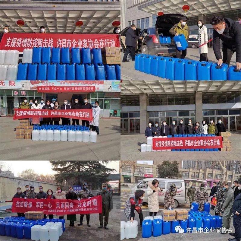 疫情就是命令,防控就是責(zé)任。 1月28日, 許昌市企業(yè)家協(xié)會秘書處向全體會員發(fā)出了《萬眾一心 戰(zhàn)勝疫情愛心捐款捐物》倡議書, 號召會員們?yōu)橹Υ蜈A疫情防控阻擊戰(zhàn),履行社會責(zé)任,進行愛心捐款,并成立 了由8 人組成的協(xié)會疫情防控小組,專門負(fù)責(zé)疫情防控期間協(xié)會的相關(guān)工作和活動。 短短幾天時間 里 ,43位會員通過不同渠道捐款12 萬元,捐物 價值30多 萬元,會員們積極承擔(dān)社會責(zé)任,用實際行動感恩社會,回報社會,為疫情防控盡綿薄之力。