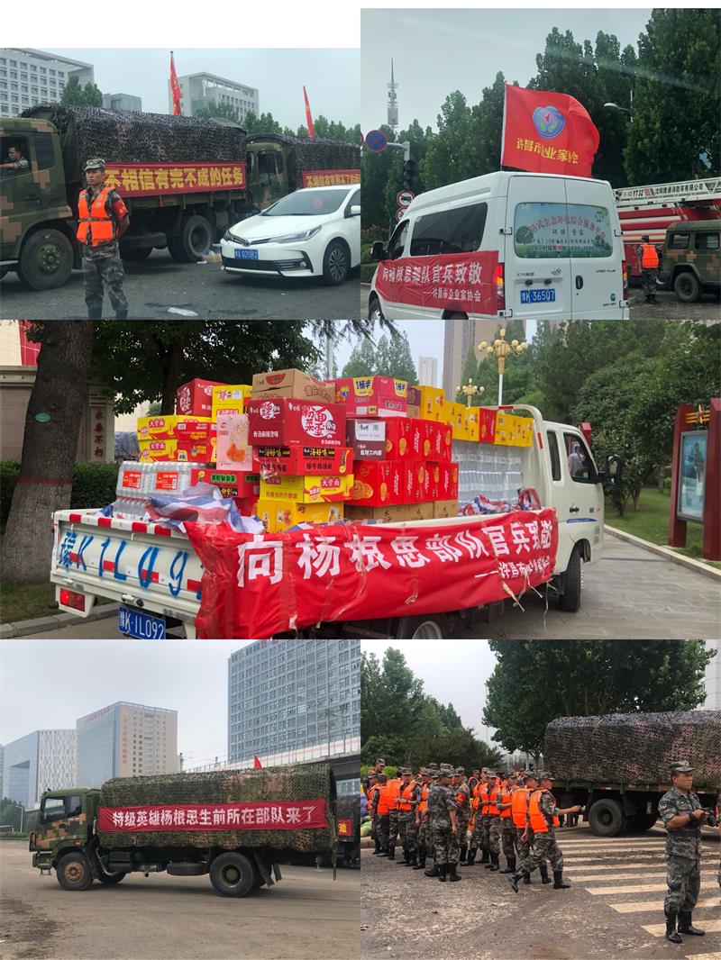時間點來到7月23日下午,在企業(yè)家協(xié)會秘書長黃玉霞的帶領(lǐng)下,動員大家發(fā)揚偉大的擁軍支前精神,唱響“視軍隊如長城、把軍人當親人”擁軍口號,全力支持駐軍防汛救災(zāi),協(xié)會30位企業(yè)家自發(fā)組織起來,購置了礦泉水、消毒水、面包、火腿腸、花露水等近6萬元的物質(zhì),驅(qū)車前往正鄭州慰問逆流而上的楊根思部隊。