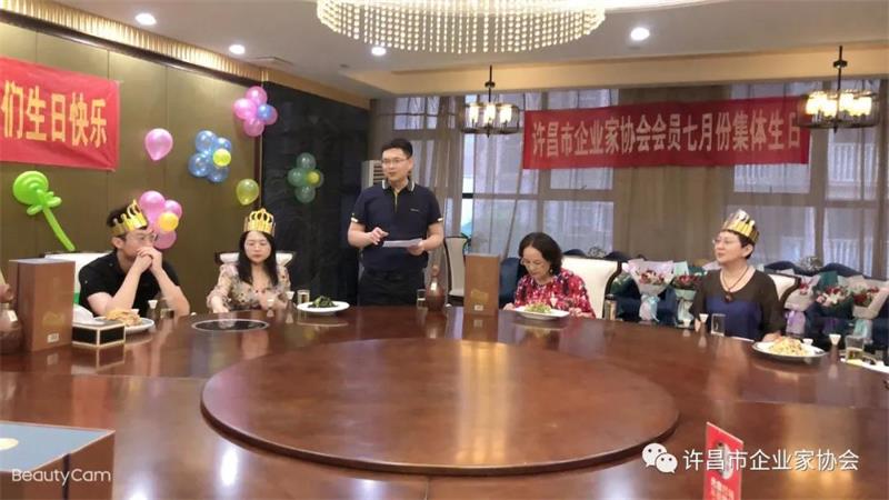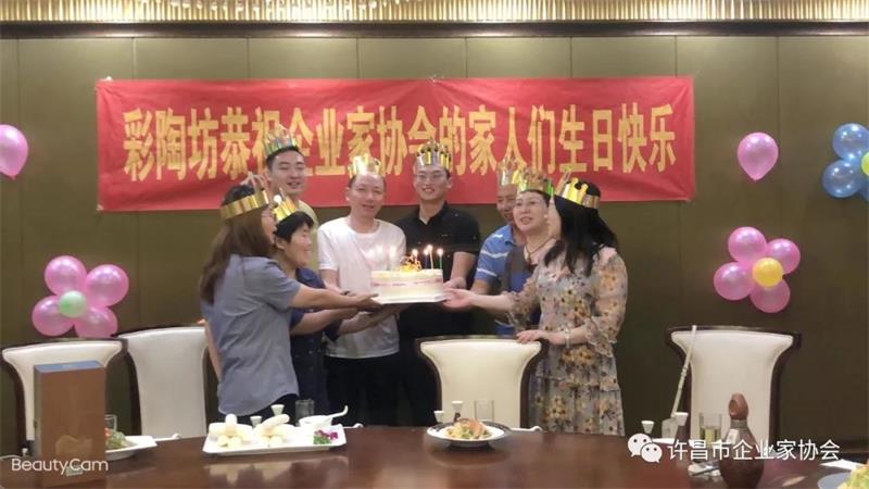 許昌市企業(yè)家協(xié)會舉辦七月份生日宴,燭光搖曳、歡聲笑語!參加生日宴的會員們笑容滿面,享受著協(xié)會大家庭帶來的溫暖。點點燭光,照亮了每位會員的心;濃濃溫情,讓壽星們久久回味!