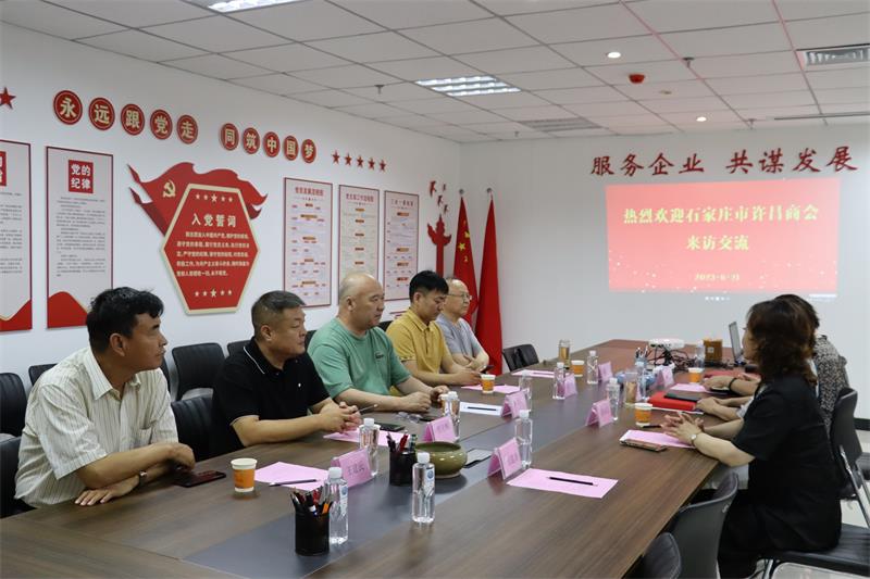 6月21日上午石家莊市許昌商會會長朱登山、 執(zhí)行會長孫會營、賈克輝、秘書長焦平、副秘書長王建民一行5人蒞臨我會參觀交流。市工商聯副主席曲釗霞對到訪的兄弟商會表示熱烈歡迎,我會秘書長黃玉霞、執(zhí)行會長張建濤、副秘書長范文彥熱情接待并進行座談交流。 通過參觀文化墻、觀看宣傳片向來賓展示了協(xié)會歷程和發(fā)展情況。