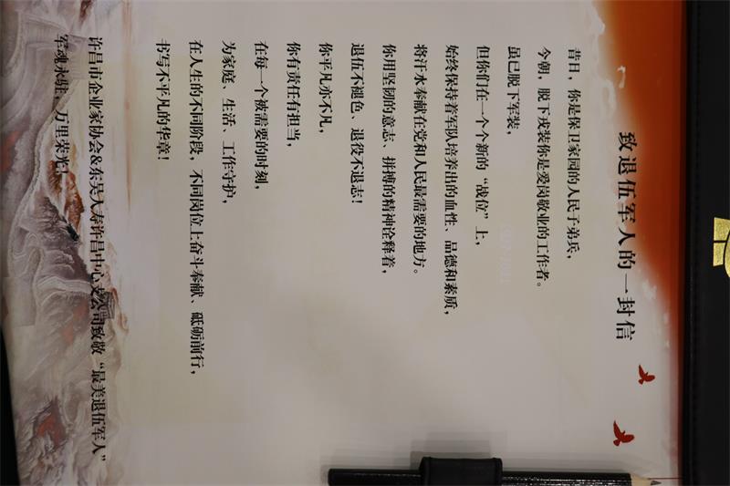 16名退役軍人歡聚一堂,許昌市企業(yè)家協(xié)會(huì)秘書(shū)長(zhǎng)黃玉霞、東吳人壽保險(xiǎn)股份有限公司許昌中心支公司總經(jīng)理楊志恒在會(huì)上致辭,向?yàn)楸<倚l(wèi)國(guó)、建設(shè)祖國(guó)做出重要貢獻(xiàn)的退役軍人表示熱烈的歡迎和崇高的敬意。許昌市企業(yè)家協(xié)會(huì)7月份值班會(huì)長(zhǎng)、悅星悅藝術(shù)中心校長(zhǎng)梁華麗宣讀了11名“最美退役軍人”獲獎(jiǎng)?wù)呙麊?,向他們頒授了獎(jiǎng)狀和獎(jiǎng)品。設(shè)立這個(gè)獎(jiǎng)項(xiàng),代表了許昌市企業(yè)家協(xié)會(huì)對(duì)“退役不退志,退伍不褪色”,創(chuàng)業(yè)路上披荊斬棘,為許昌經(jīng)濟(jì)發(fā)展做出突出貢獻(xiàn)的退役軍人表示崇高的敬意和感謝,他們雖已脫下軍裝,但軍人風(fēng)采依舊,擦亮名片,轉(zhuǎn)戰(zhàn)人生“第二戰(zhàn)場(chǎng)” ,書(shū)寫(xiě)創(chuàng)業(yè)新篇章,值得人們尊崇。