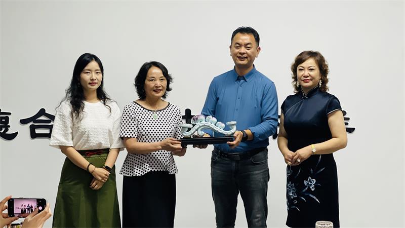 (協(xié)會秘書長黃玉霞代表協(xié)會向許昌外商投資企業(yè)協(xié)會贈送如意鈞瓷)