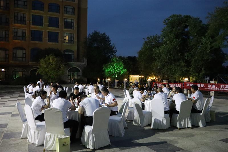 當天晚19時許,在鮮花盛開的花都溫泉湖畔之夜廣場上,隨著歡快吉祥的音樂節(jié)拍響起,企業(yè)家身著會服,手拿國旗齊聲高歌《我和我的祖國》,瞬間將人們帶入到了“慶中秋 迎國慶”的喜慶祥和氛圍當中。隨后,50多人圍坐用餐,隨著花都溫泉私房菜陸續(xù)擺上餐桌,頓時香氣四溢,大家一起舞動筷子,大快朵頤。夜幕降臨,在綠水環(huán)繞間,別具一格的鄢陵美食映紅了大家幸福的笑臉,其樂融融,協會秘書長黃玉霞發(fā)表了熱情洋溢的致辭。