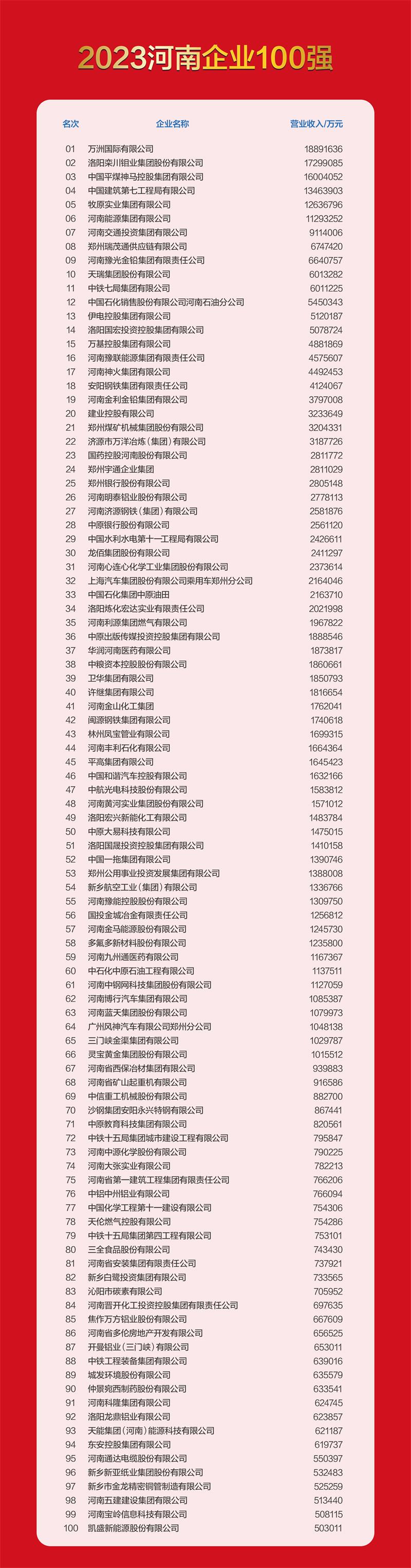 0月27日,由河南省企業(yè)聯(lián)合會、河南省企業(yè)家協(xié)會主辦的“2023河南企業(yè)100強(qiáng)高峰會”在開封市盛大召開。