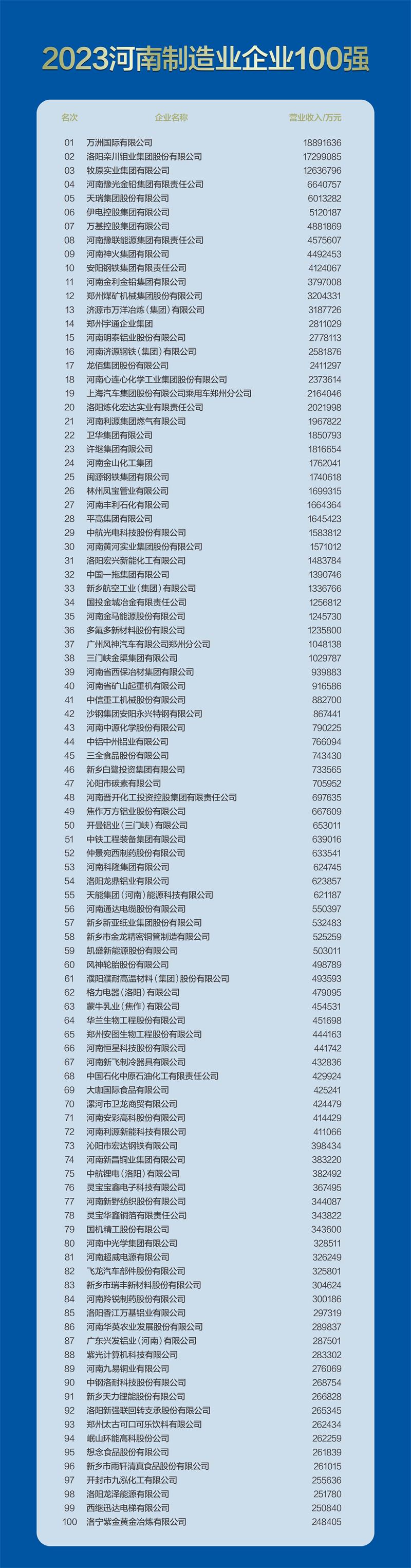 許繼集團(tuán)有限公司、河南黃河實業(yè)集團(tuán)股份有限公司;許昌市榮獲“2023河南制造業(yè)企業(yè)100強(qiáng)”的企業(yè)有