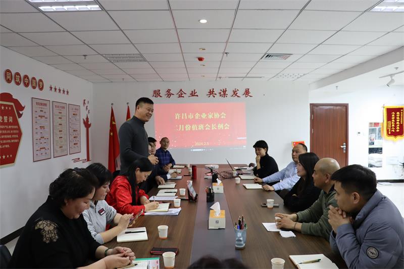 2月5日晚上,許昌市企業(yè)家協(xié)會二月份輪值會長工作交接會在許昌市企業(yè)家協(xié)會會議室召開,會議由二月份值班會長、河南湖雪食品有限公司總經(jīng)理張建濤主持。