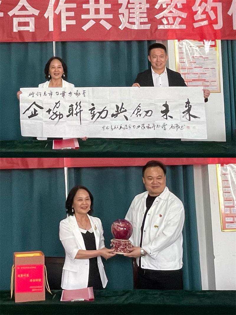會上,駐馬店市工商聯(lián)副主席、市企業(yè)家協(xié)會黨委書記黨進(jìn)代表駐馬店市企協(xié)向許昌市企協(xié)贈(zèng)送名家書法作品《企協(xié)聯(lián)動(dòng) 共創(chuàng)未來》;黃玉霞秘書長代表許昌市企協(xié)向駐馬店市企協(xié)回贈(zèng)由河南省工藝美術(shù)大師鈞瓷《財(cái)源滾滾》。一卷墨寶、一件珍品,藝術(shù)與古典交相輝映,傾注了兩地協(xié)會的溫暖情誼,同時(shí)也傳遞了雙方的美好祝福。
