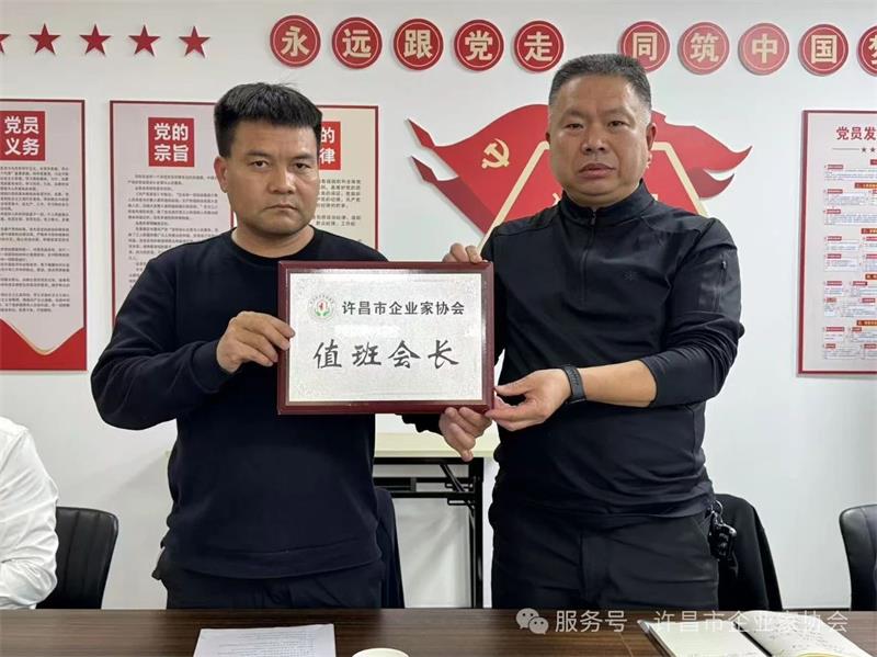 三月份輪值會(huì)長(zhǎng)楊廣偉、四月份輪值會(huì)長(zhǎng)韋永才進(jìn)行了值班交接。