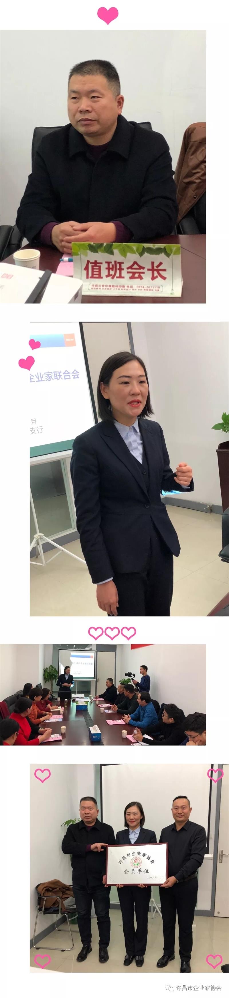 2018年12月10日下午兩點(diǎn)本月值班會長例會如期在浦發(fā)銀行蓮城大道支行二樓會議室召開,本次會議由值班會長、許昌鼎和商貿(mào)有限公司總經(jīng)理楊廣偉主持。在會議正式開始前由會員企業(yè)浦發(fā)銀行許昌分行行長徐麗娟向大家介紹浦發(fā)銀行新的理財政策及貸款優(yōu)惠政策,解決現(xiàn)在企業(yè)融資難的問題。